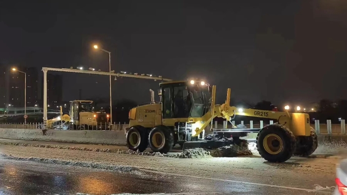 徐工平地機(jī)加滿油箱,列隊(duì)集合、整裝待發(fā),全力以赴投入到破冰除雪,為道路暢通和行車安全保駕護(hù)航。徐工的機(jī)手們更是發(fā)揮了徐工人無畏艱苦、敢于奉獻(xiàn)的精神,以高度的責(zé)任感和使命感,堅(jiān)守在除雪一線,保障市民的安全出行。冰雪紛飛的夜幕下,徐工平地機(jī)的燈光照亮了歸家人的路。