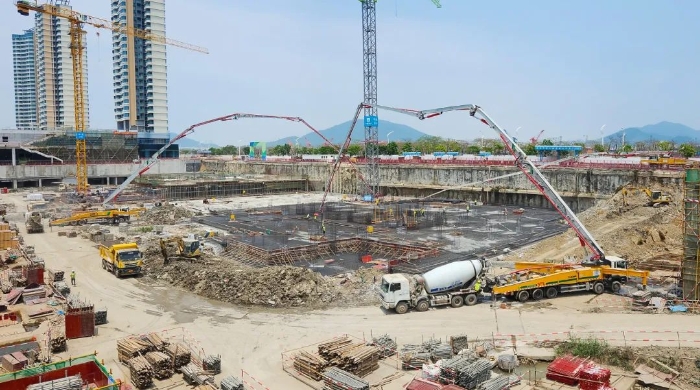 據(jù)了解,橫琴科學城(一期)是全國最大的EPC房建項目,涵蓋31棟建筑,用地面積約32.2萬平方米,總建筑面積高達116萬平方米。而此次施工更是需要一次性澆筑5000方C35標號混凝土,這無疑是一場對設(shè)備性能與施工團隊能力的嚴峻考驗。