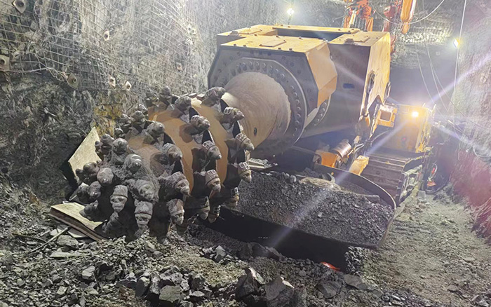 該礦施工斷面5m*4.5m,巖層硬度在60MPa左右,客戶所選購(gòu)的徐工XTR7/360掘進(jìn)機(jī)最大截割高度7.2m,可實(shí)現(xiàn)中等斷面隧道一次開挖成型,切割頭配合硬巖截齒,掘進(jìn)時(shí)可以向巖壁施加每平方厘米1.5噸的力量,在機(jī)動(dòng)靈活的基礎(chǔ)上兼具掘進(jìn)硬巖的優(yōu)勢(shì)。