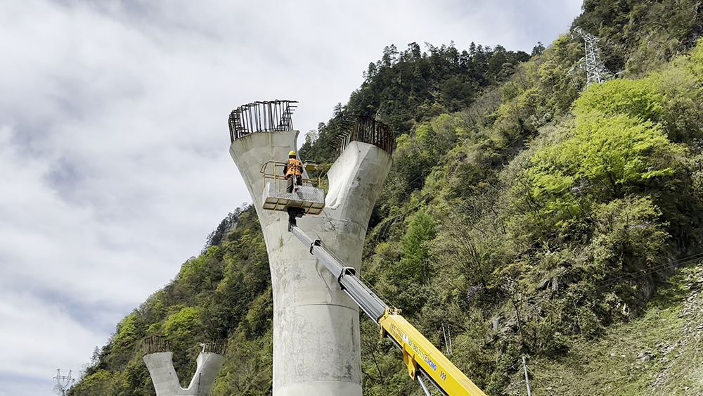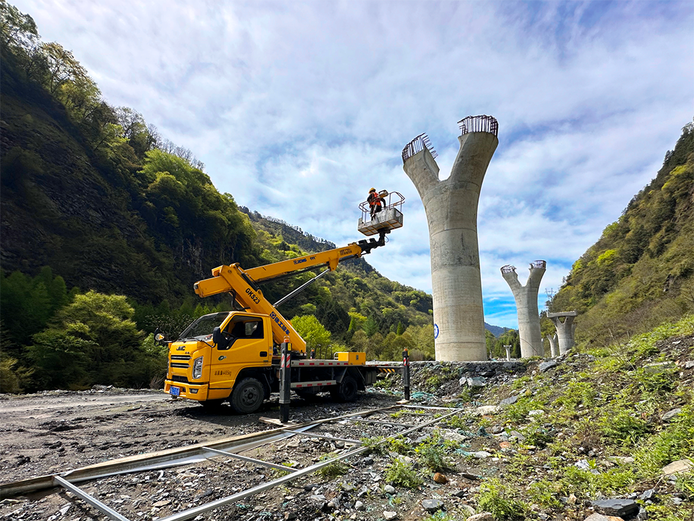 施工環(huán)境惡劣,工期艱巨,徐工GKS23B高空作業(yè)車最大作業(yè)高度22.8m,最大作業(yè)幅度14.6m,采用新型高強(qiáng)度超薄鋼材,完美駕馭川西石礫沙地的施工環(huán)境,憑借穩(wěn)定、高效的舉升性能,出色完成橋墩施工任務(wù),將藍(lán)牌產(chǎn)品各項作業(yè)性能發(fā)揮到極致。