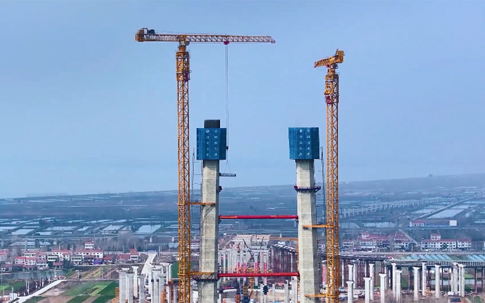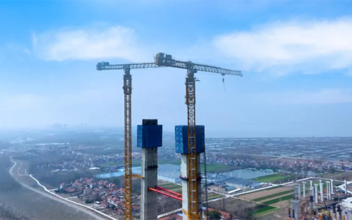 大橋主墩建設(shè)是整座大橋順利完工的“壓艙石”,大橋北主塔高度211.75米,采用主塔鋼筋部品整體吊裝。作為徐工超大塔中的明星產(chǎn)品,兩臺徐工XGT2230A-100S扛起大橋北主塔的施工重任。
