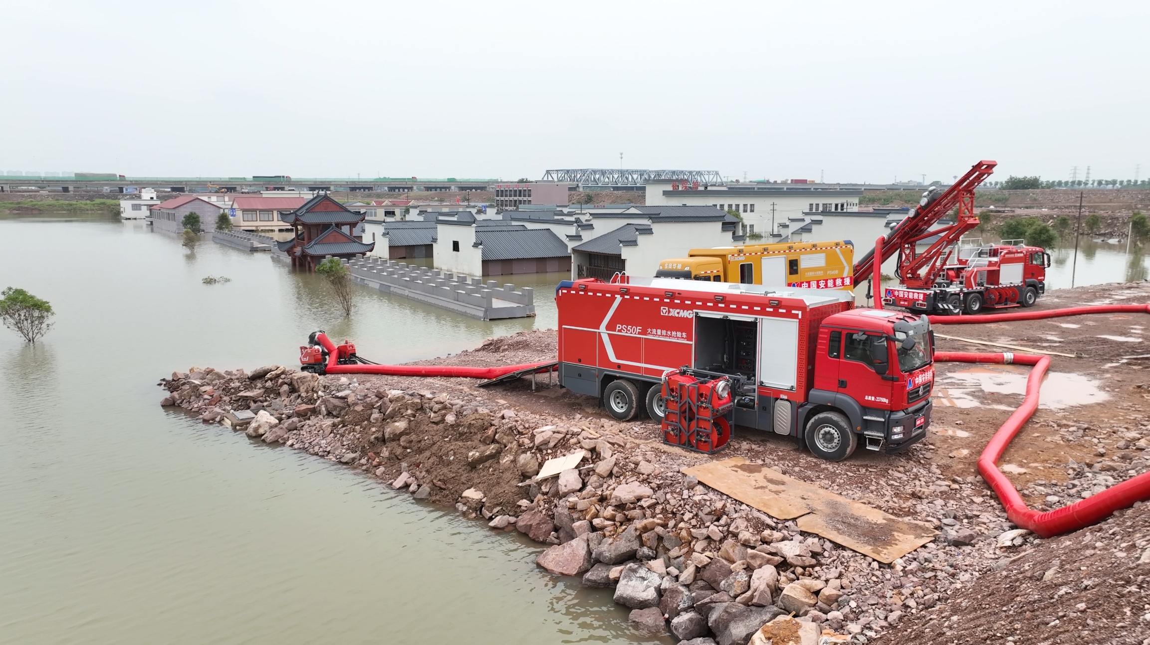 在各類洪澇災(zāi)害搶險(xiǎn)救援中“身經(jīng)百戰(zhàn)”的徐工PS50F子母式排水搶險(xiǎn)車、GP35C垂直排水搶險(xiǎn)車、PS40B泵組式排水搶險(xiǎn)車聯(lián)合應(yīng)戰(zhàn),充分參與排水搶險(xiǎn)項(xiàng)目演練。