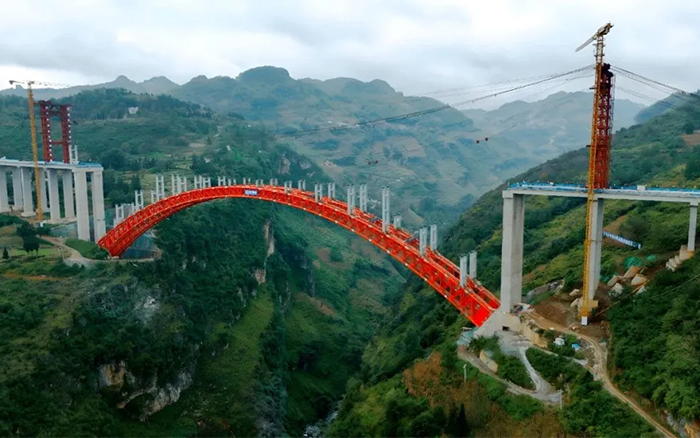 “這座橋工期緊,技術(shù)難度大,吊裝過程中構(gòu)件結(jié)構(gòu)重、空間姿態(tài)調(diào)整難度高,給項目施工帶來了一定困難?!卑姿犹卮髽蝽椖康匿摻Y(jié)構(gòu)負(fù)責(zé)人毛宗宇說。白水河特大橋主橋采用跨徑340m的上承式鋼管混凝土變截面桁架拱橋,全橋共設(shè)計58個吊裝節(jié)段,在百米高空中完成拼裝,而誤差要保持在毫米級,這些為塔機施工帶來了高難度挑戰(zhàn)。