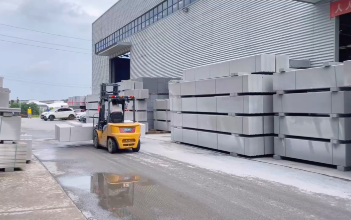 湖南某石材廠內,徐工叉車新 E 系列電動平衡重叉車,耀世登場!