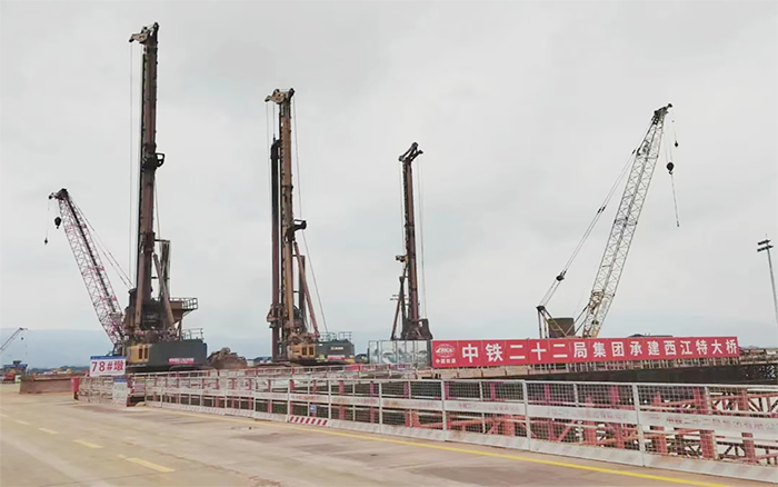 在深水基礎(chǔ)施工中,徐工采用創(chuàng)新的鋼護(hù)筒加超大旋挖鉆施工方法,確保一次性成孔,大大提升了施工效率。