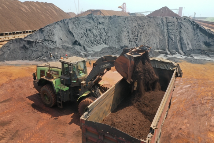 在日照港嵐山港區(qū),徐工8T新能源裝載機(jī)投入使用。
