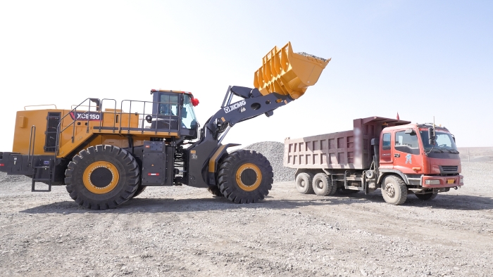 國(guó)內(nèi)首臺(tái),徐工XC9150超大噸位混動(dòng)裝載機(jī)正在全力作業(yè),一臺(tái)臺(tái)礦用卡車被陸續(xù)裝滿,依序駛出礦區(qū)。徐工XC9150投入使用僅僅三個(gè)月,作業(yè)時(shí)間近1000小時(shí),成為礦區(qū)工程裝備群的“模范生”。