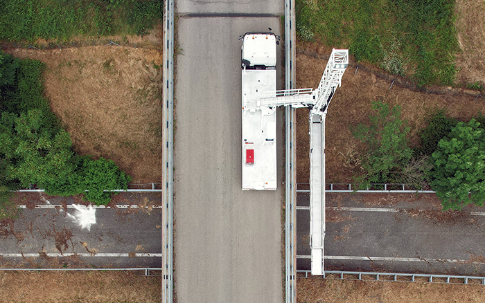 風(fēng)景秀麗的阿爾卑斯山前,一個(gè)白色臂膀半“摟”住歷史悠久的歐洲古橋……占據(jù)這張靚麗風(fēng)景照C位的,是正在進(jìn)行橋梁檢修維護(hù)的徐工橋梁檢測(cè)車。