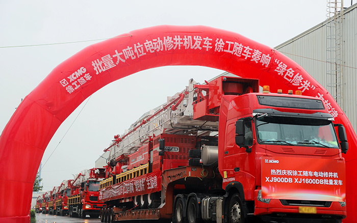 本次批量發(fā)車的兩款產(chǎn)品型號分別是XJ900DB和XJ1600DB。其中,徐工XJ1600DB電動修井機是行業(yè)首臺160t級電動儲能自繃繩修井機,整車寬度2.55m,滿足最新國標(biāo)道路法規(guī)要求,為同等級行業(yè)首款可上正式牌照的產(chǎn)品,解決了每次轉(zhuǎn)場前都要辦理臨時牌照的難題。
