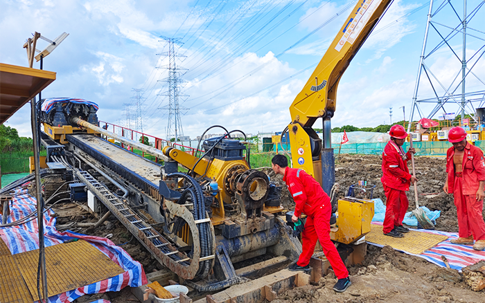 為了確保定向鉆穿越有序推進和回拖順利完成,徐工技術人員隨項目部提前對現(xiàn)場進行實地勘察,培訓作業(yè)人員,開展管道回拖演練。施工過程中,擴管回拖到泥巖層時,土質粘稠抱鉆,徐工XZ6600水平定向鉆機搭載的“扭矩自適應自動巡航施工技術”“多工況調速和旋轉”“推拉多檔控制技術”為回拖提供了更大的扭矩,確保了工程順利推進。