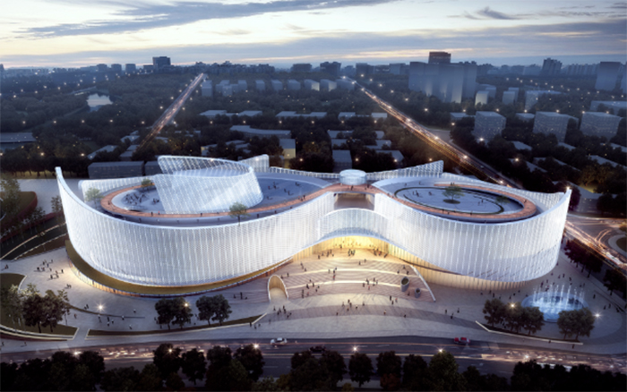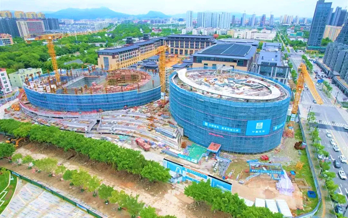 蒼南大劇院項目總投資4.5億元,總建筑面積約4萬平方米,主要包含一座1000座的歌劇院和一座400座的小劇場。劇院以“逐浪揚帆”為設計主題,建筑外觀為曲面效果,主體異型結構占比75%,建筑結構由弧形鋼架、大跨度彎扭箱型構件組成,這也帶來了吊裝難度大、吊裝量大的項目施工難題。