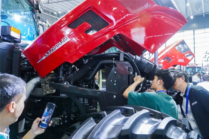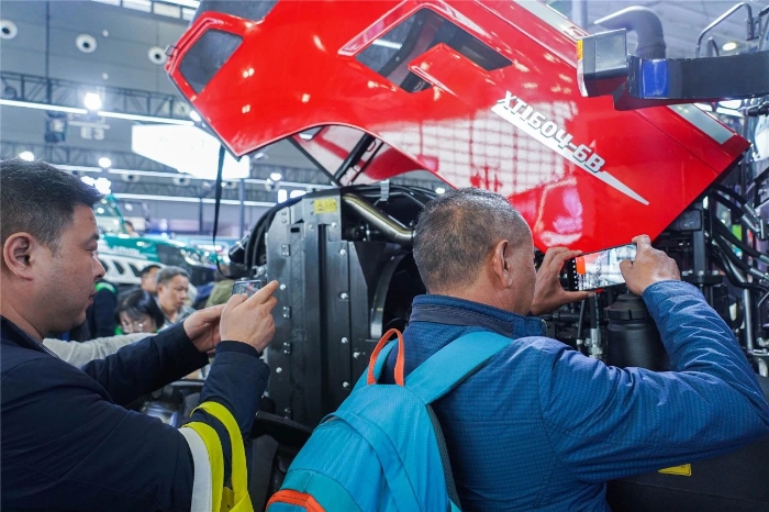 此次為徐工首次參加農(nóng)機(jī)展。展會現(xiàn)場,來自全國各地的用戶、經(jīng)銷商、農(nóng)機(jī)愛好者匯聚一堂,共話農(nóng)機(jī)行業(yè)新技術(shù)、新趨勢、新機(jī)遇。徐工展區(qū)內(nèi),人頭攢動,凝聚徐工農(nóng)機(jī)人智慧與匠心的五款明星產(chǎn)品閃耀登場,吸引了眾多客戶及合作伙伴熱情咨詢、現(xiàn)場商談,全方位展示了“高技術(shù)、高質(zhì)量、高性價比”大型化、成套化產(chǎn)品的風(fēng)采。