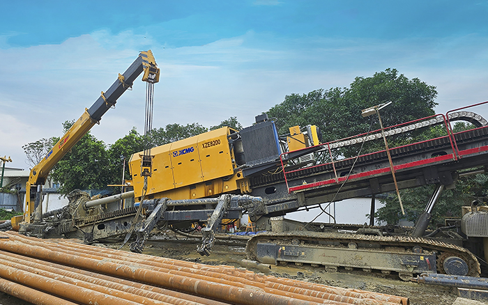 XZE8200電驅(qū)水平定向鉆機設(shè)備的額定推拉力即可達800t,最大扭矩180kN·m,具有系統(tǒng)控制精度高、智能化程度高、自動化水平強的技術(shù)特點,下線即交付,歷時2年,3600h施工驗證,累計穿越距離8000多米。