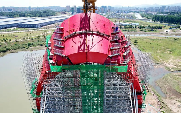 隨著重達40噸的主橋鋼塔柱最后一個節(jié)段