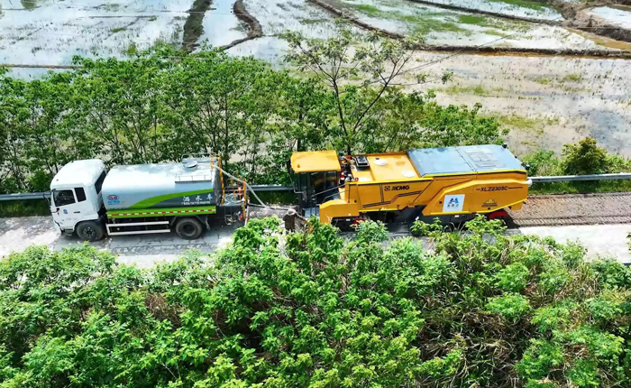 針對(duì)這些痛點(diǎn),徐工智慧施工技術(shù)成套道路裝備全場景解決方案,專門針對(duì)鄉(xiāng)村道路施工場景,制定了適配的場景解決方案。該方案融合了推土、平地等多項(xiàng)3D控制技術(shù),并配備水泥路面冷再生機(jī),實(shí)現(xiàn)了全斷面的數(shù)據(jù)融合,有效消除了原有路面的缺陷。特別值得一提的是,該方案將北斗定位技術(shù)與慣性導(dǎo)航系統(tǒng)相結(jié)合,巧妙解決了在定位信號(hào)不佳區(qū)域的施工難題。