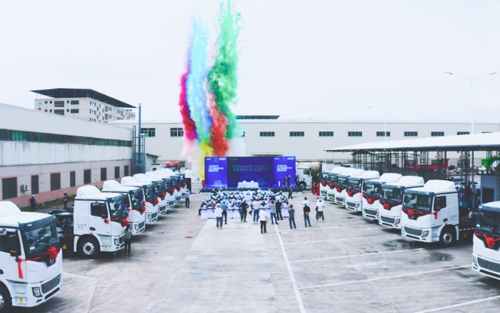 近日,百臺徐工新能源重卡交付儀式在“世界客都”——廣東梅州如期舉行,助力當(dāng)?shù)厣笆?、水泥輔料及煤炭運(yùn)輸??蛻艏靶旃て嚧淼劝儆嗳藚⒓踊顒?dòng)。