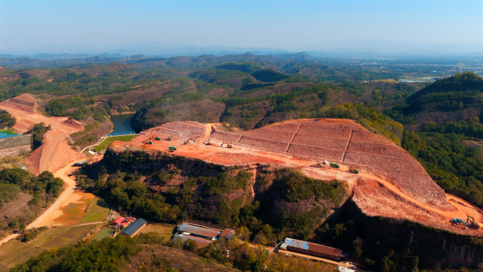 作為連接長(zhǎng)三角、粵港澳大灣區(qū)與長(zhǎng)江中游城市群的關(guān)鍵樞紐,G320國道南移項(xiàng)目需穿越百余米高的紅砂巖山體,施工標(biāo)段更因毗鄰水庫、電廠等民生設(shè)施,無法進(jìn)行爆破開采。