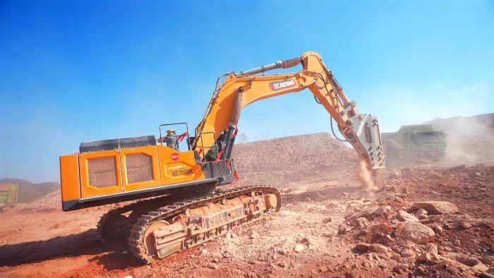 徐工技術(shù)團(tuán)隊(duì)實(shí)地勘察后,為客戶制定了一套“組合拳”打法——先用兩臺(tái)XE750GK搭配248型破碎錘實(shí)施“梅花樁”破碎工法,再用大鉤子把巖石鉤松。
