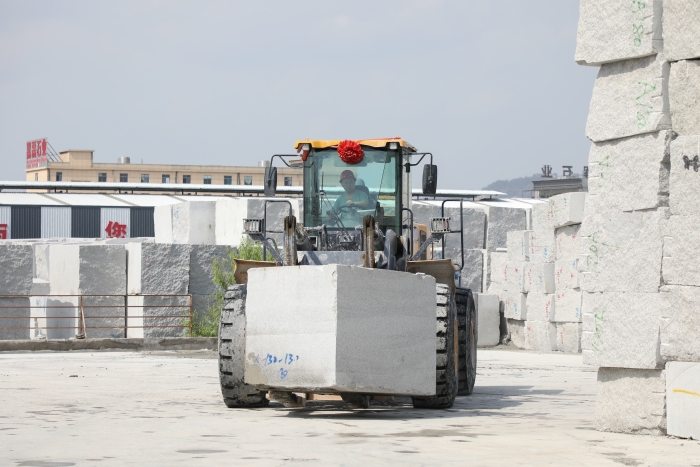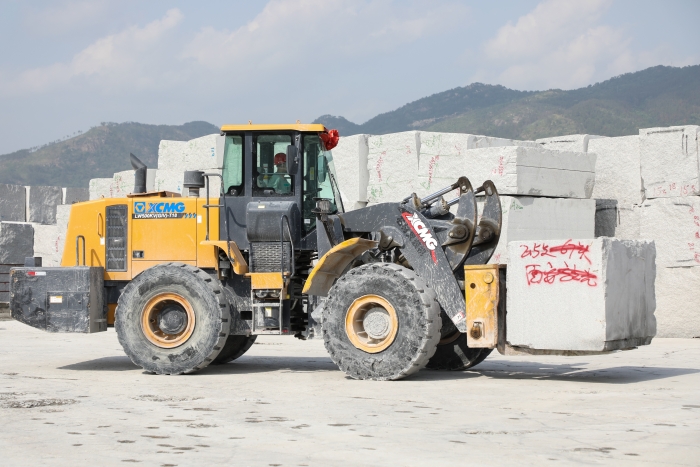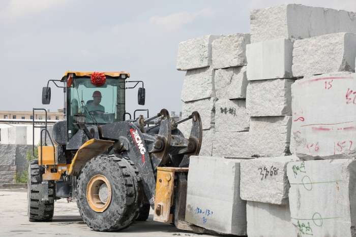 高檔花崗巖石材,以其優(yōu)美的外觀、堅(jiān)硬的質(zhì)地,一直是公共設(shè)施外立面裝飾的首選??蛻粲玫倪@臺徐工LW500KV(GIV)-T18石材叉裝機(jī)已在石材加工廠使用兩年,“相比過去用的車,操控輕松方便,視野很開闊,在復(fù)雜工作環(huán)境下也非常穩(wěn)定可靠,干活效率高?!瘪{駛員對徐工石材叉裝機(jī)贊賞有加。