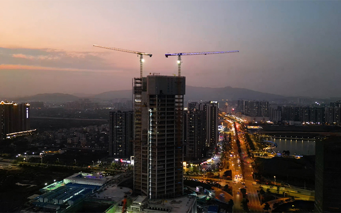 與高樓肩并肩,讓夢想都實現(xiàn)。3臺XGT6515E-10S塔機(jī)在施工現(xiàn)場運(yùn)轉(zhuǎn)自如,相互配合,合力保障項目施工建設(shè)。