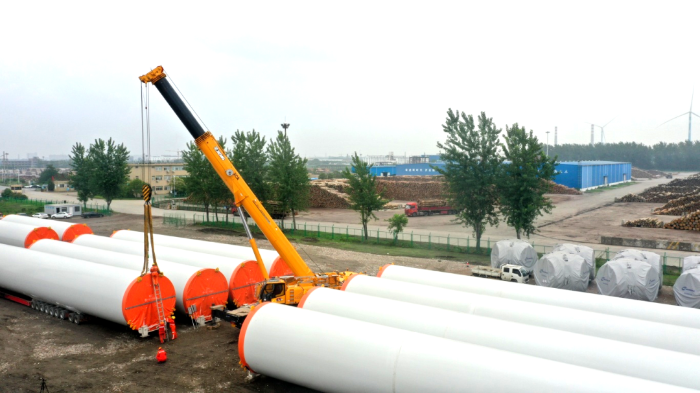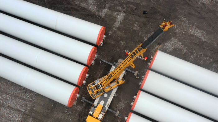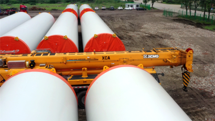 在繁忙的港口,長40米、重100噸的風力發(fā)電塔筒擺放整齊,等待著一次關(guān)鍵的騰挪,吊裝空間局促——塔筒擺放距離較近,蕩距空間嚴重受限,這是對起重機性能與操控的極致考驗。徐工G2代起重機XCA200G8-1從容入場,以實力宣告:空間,絕非限制。