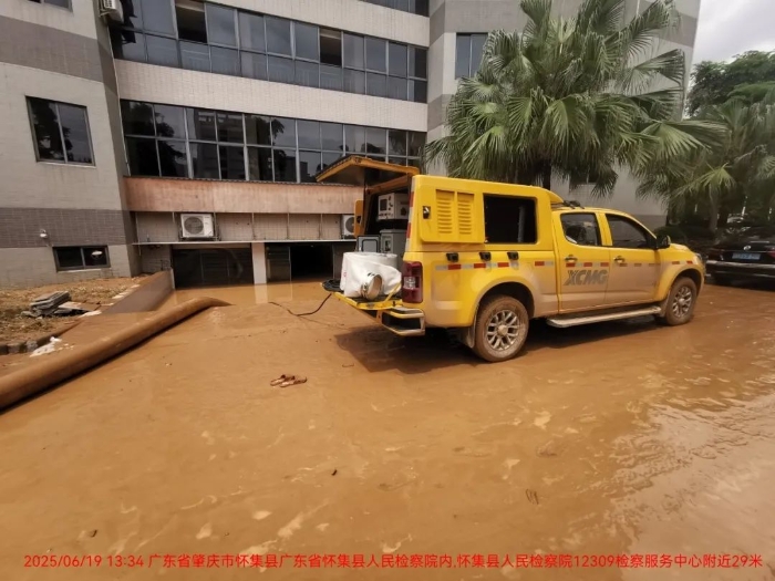 懷集縣人民檢察院地下車庫遭大量積水倒灌,水位迅速上漲,停放車輛和設(shè)施面臨嚴重威脅。由于地下車庫空間狹窄,大型救援車輛難以施展身手,排澇工作陷入困境。