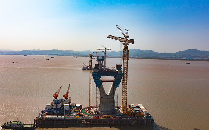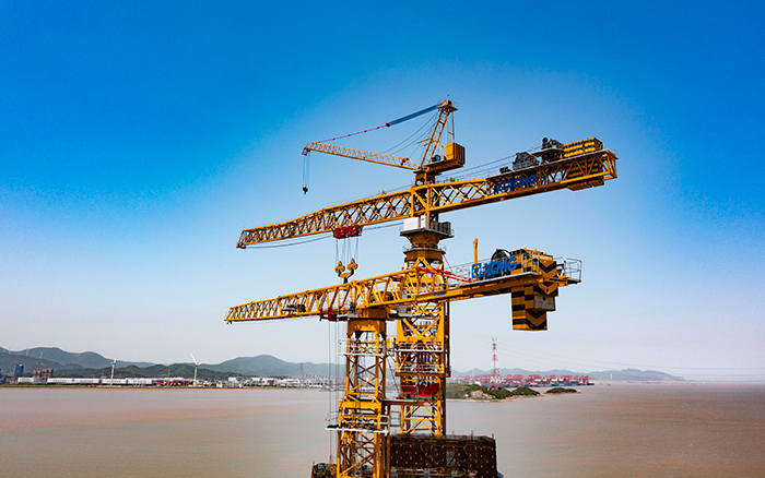 初夏時節(jié),東海之畔,徐工XGT7300-260S、XGT8300-320S揮舞鐵臂,如“定海神針”矗立深藍,助力舟山六橫大橋二期工程青龍門大橋主塔施工,“海上巨龍”穩(wěn)扎穩(wěn)打向上攀升。