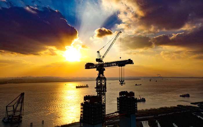 近日,在世界最大跨徑懸索橋--張靖皋長(zhǎng)江大橋南航道橋北主塔施工現(xiàn)場(chǎng),徐工XGT15000-600S超大型塔機(jī)如鋼鐵巨人伸展手臂,將重達(dá)數(shù)百噸的鋼塔節(jié)段緩緩吊起,“搭積木”般穩(wěn)穩(wěn)放落在塔柱上,贏得施工方“技術(shù)先進(jìn)、安全可靠、吊裝能力強(qiáng)、操作平穩(wěn)、就位精準(zhǔn)、安拆效率高、智能化水平高、施工效益顯著”的高度肯定。