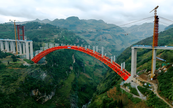 近日,納晴高速白水河特大橋的主拱圈管內(nèi)混凝土灌注已順利完成,全橋施工進度已達(dá)到85%。