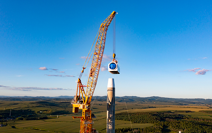 在項目施工現(xiàn)場 這臺徐工3300噸米級動臂塔機 將重達(dá)150噸的機艙吊至160米高度 快、穩(wěn)、準(zhǔn),高效吊裝一次就位