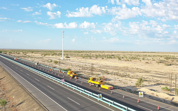 它們穩(wěn)穩(wěn)扎在對(duì)向車道,徐工金車身在周遭環(huán)境中格外顯眼,警示燈不知疲倦地閃爍著,像兩尊盡職的崗哨,將施工區(qū)域與潛在危險(xiǎn)清晰分隔。當(dāng)?shù)厥姓块T視施工安全為首位,選在車流量少的時(shí)段施工,將徐工防撞緩沖車部署在后方。有了它們?cè)谂裕┕^(qū)域仿佛被筑起一道堅(jiān)固的防護(hù)墻,為施工筑起了一道可靠的安全防線。