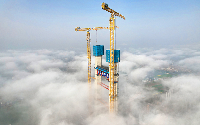 目前,兩臺徐工超大塔正在進(jìn)行大橋北主塔第26節(jié)施工,主塔以平均每周6米的速度迅速“節(jié)節(jié)長高”,高度已達(dá)144.5米,高效的施工效率贏得客戶高度稱贊。