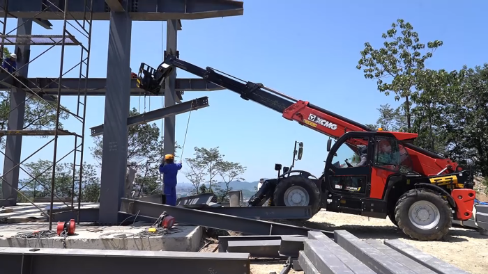 搭載鏟斗屬具變身“清潔大師”,打掃清理施工場地;使用貨叉屬具,搬運鋼結(jié)構(gòu)材料穩(wěn)如泰山;配上卷揚機,又穩(wěn)穩(wěn)當當將鋼架構(gòu)安裝到位;活脫脫上演一場“72變”秀實力,贏得客戶連連點贊。
