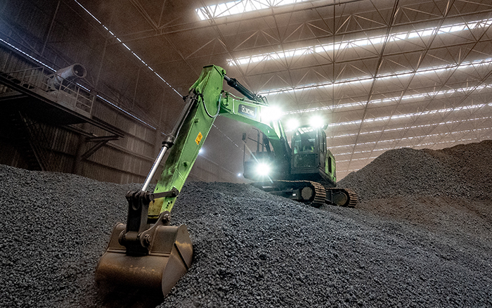 在封閉的廠房中,XE215EV純電動挖掘機正對鋼鐵原料礦石進行挖掘、搬運作業(yè),鋼鐵冶煉廠屬于重灰塵環(huán)境,而XE215EV卻練就了一身“超級本領(lǐng)”。