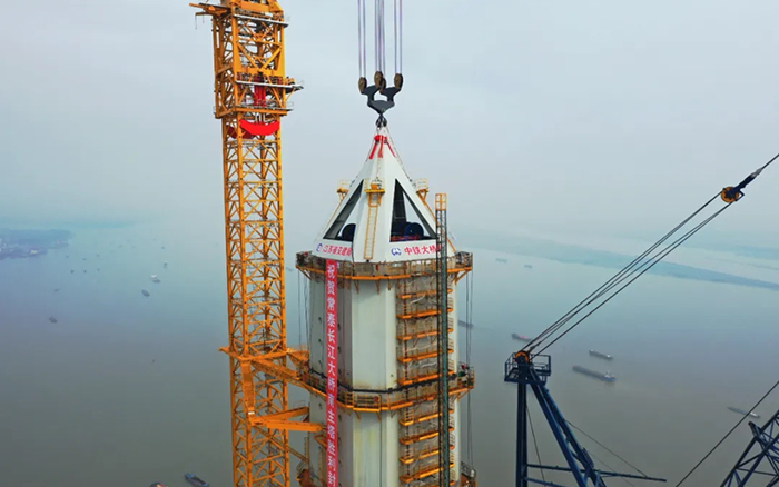 常泰長江大橋集高速公路、城際鐵路、普通公路“三位一體”,是世界上最大跨度的斜拉橋,主塔設(shè)計總高350米,對服務(wù)“長江經(jīng)濟(jì)帶”建設(shè)、長三角一體化發(fā)展等國家重大戰(zhàn)略具有重要意義。
