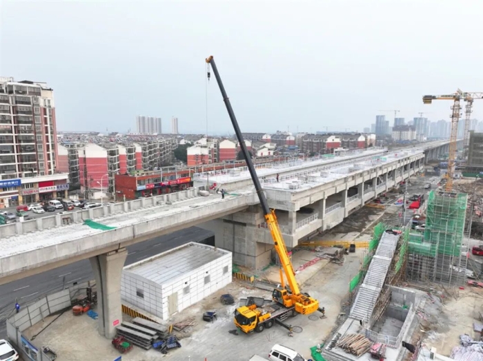 在華中某軌道交通項目現(xiàn)場,徐工G2代XCT50G5-1輪式起重機以40米主臂工況,穩(wěn)穩(wěn)將兩根長25米、單重1.5噸的軌道板吊運至高架橋基。整個吊裝過程精準、平穩(wěn)、動作流暢,憑借搭載的吊鉤防擺技術(shù),大幅簡化了操作難度,提升了吊裝平穩(wěn)性與安全性,成為軌道鋪設(shè)中的關(guān)鍵力量。