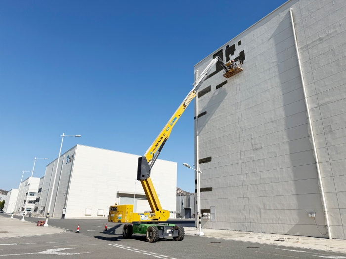 近日,在青島東方影都攝影基地,徐工XGS32ACK-Li高空作業(yè)平臺出色完成了多個大型攝影棚的墻面維護任務(wù)。