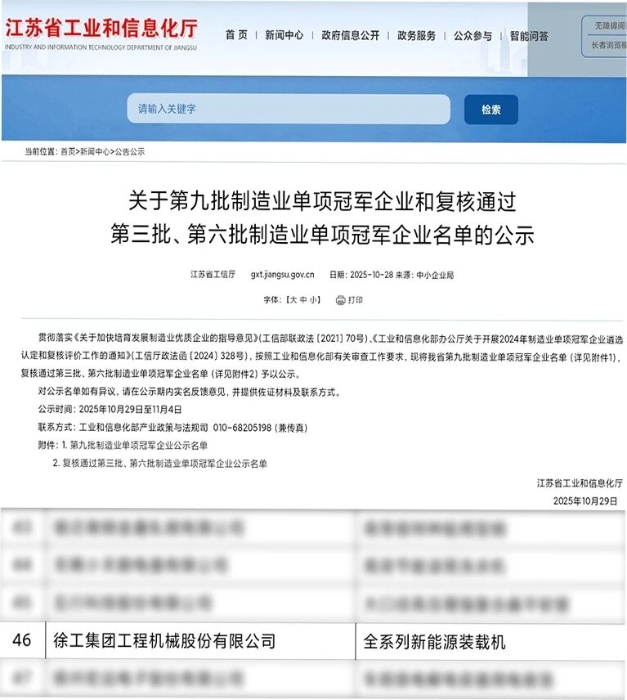 經(jīng)徐州市推薦、江蘇省工信廳評(píng)選、協(xié)會(huì)專家評(píng)審、工信部審核等流程,徐工全系列新能源裝載機(jī)入圍“第九批制造業(yè)單項(xiàng)冠軍企業(yè)”名單。