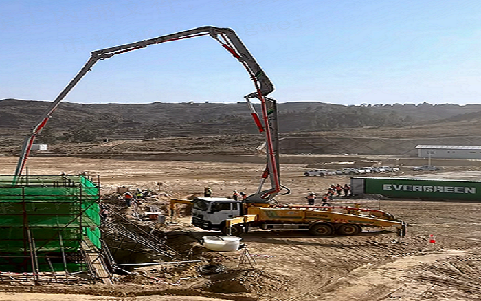 此次工程不僅面臨施工設備和材料供應奇缺等難題,且厄籍職工沒有大型混凝土澆筑經(jīng)驗,加之項目澆筑需要長時間、大方量的持續(xù)性作業(yè),施工困難重重。徐工HB43V泵車和徐工攪拌車協(xié)力共進,完美應對此次澆筑任務。