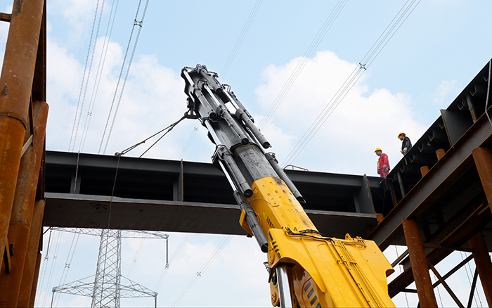 值得關(guān)注的是,施工匝道路段上方設(shè)有高壓電線,既要保證作業(yè)處于安全高度,又要確保施工平穩(wěn)高效,一般起重機(jī)無法介入施工。SQZ8000折疊臂起重機(jī)專為低矮、狹窄等空間受限工況,提供安全、穩(wěn)定、高效的設(shè)備轉(zhuǎn)運(yùn)解決方案,成為本次施工的首選設(shè)備。