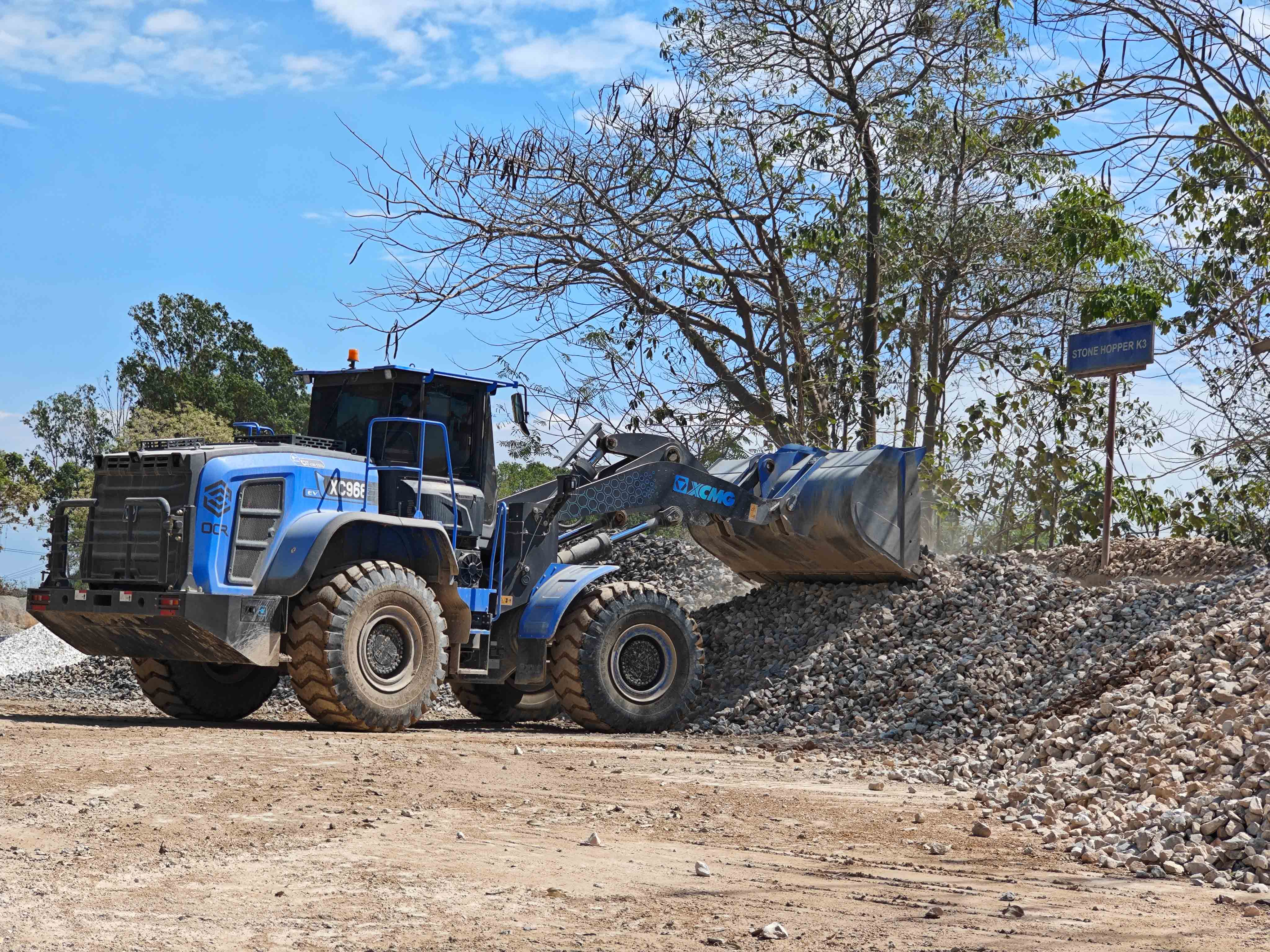 礦山生產(chǎn),作業(yè)時間長,物料堅(jiān)硬密度高,道路崎嶇,工況較為險(xiǎn)重。徐工XC968-EV純電動裝載機(jī)的新能源優(yōu)勢,在礦道端的鏟裝作業(yè)優(yōu)勢非常明顯,相對密閉空間內(nèi),零排放、低噪音對工段一起作業(yè)的戶外工作人員的健康非常友好。