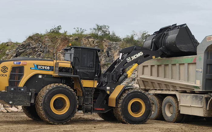 在東南亞某大型采石場(chǎng),徐工XC9108-EV純電動(dòng)裝載機(jī)正繁忙作業(yè)。這臺(tái)“鋼鐵巨獸”輕松鏟裝、轉(zhuǎn)運(yùn)著沉重石料,成為這座采石場(chǎng)綠色轉(zhuǎn)型的核心力量。