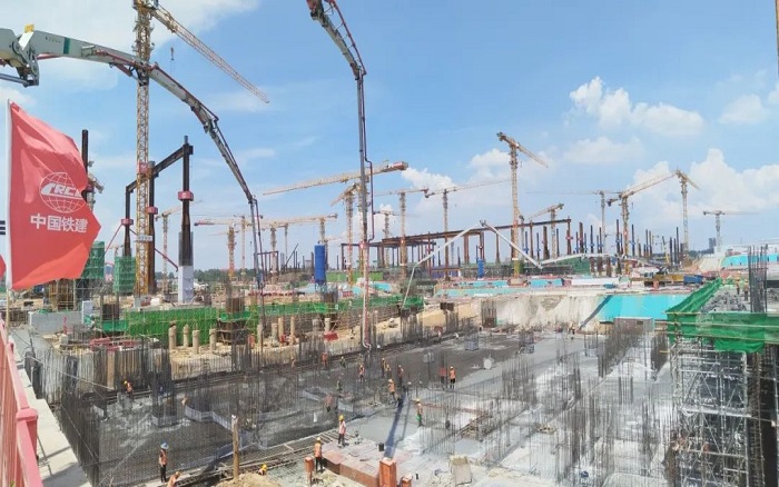 在南京北站核心區(qū)澆筑現(xiàn)場,徐工72米泵車以71.2米的布料高度精準(zhǔn)覆蓋站房頂層作業(yè)面,連續(xù)48小時作業(yè)“零故障”的紀(jì)錄,完美應(yīng)對穹頂弧形結(jié)構(gòu)與站臺層復(fù)雜節(jié)點(diǎn)的澆筑需求。