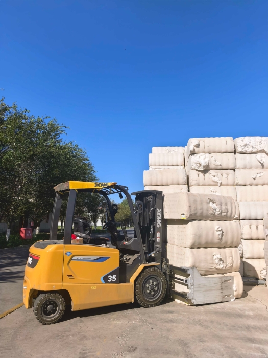 棉花廠的作業(yè)場(chǎng)景復(fù)雜,原材料搬運(yùn)與成品轉(zhuǎn)運(yùn)任務(wù)繁重。以往,傳統(tǒng)搬運(yùn)設(shè)備在效率、環(huán)保等方面存在諸多局限。而此次進(jìn)駐的徐工鯤鵬電動(dòng)平衡重叉車,擁有強(qiáng)大的性能優(yōu)勢(shì),堪稱棉花廠物料搬運(yùn)的 “理想搭檔”。它采用鉛鋰同平臺(tái)設(shè)計(jì),能滿足不同場(chǎng)景、不同客戶多樣化的能源需求。無(wú)論是在原材料堆放區(qū)搬運(yùn)沉重的棉花包,還是在成品倉(cāng)庫(kù)轉(zhuǎn)運(yùn)打包好的棉產(chǎn)品,都能輕松應(yīng)對(duì)。其驅(qū)動(dòng)系統(tǒng)、起升系統(tǒng)均采用免維護(hù)全交流大功率電機(jī),前輪電機(jī)獨(dú)立控制,動(dòng)力強(qiáng)勁,大大提升了搬運(yùn)效率。
