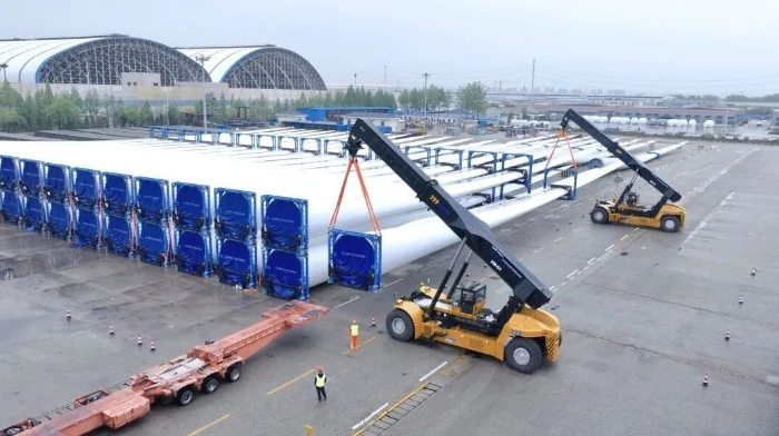 目前,XCS70KS風(fēng)電正面吊已在揚州港順利完成多次大型風(fēng)電部件裝卸任務(wù),其穩(wěn)定高效的性能成為長三角地區(qū)智慧口岸建設(shè)的標(biāo)桿力作。該裝備的成功應(yīng)用,不僅全面提升了港口運營質(zhì)效,也為全國港口的智能化升級提供了可復(fù)制、可推廣的徐工-揚州港樣板。