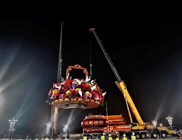 這已是徐工連續(xù)第十五年參與天安門(mén)國(guó)慶花籃吊裝任務(wù)。9月22日凌晨,兩臺(tái)徐工200噸級(jí)汽車(chē)起重機(jī)協(xié)同作業(yè),將重達(dá)60噸的籃盤(pán)平穩(wěn)起吊,與16米高的籃體實(shí)現(xiàn)毫米級(jí)精準(zhǔn)對(duì)接。